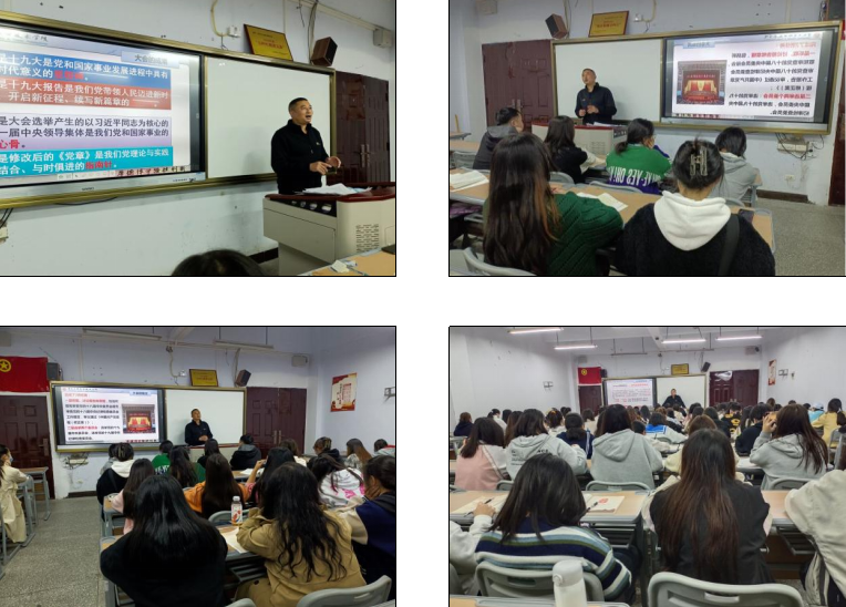 开班仪式结束后,艾书记作了培训第一课讲授,讲解了党的十九大精神。党的十九大主题是“不忘初心,牢记使命,高举中国特色社会主义伟大旗帜,决胜全面建成小康社会,夺取新时代中国特色社会主义伟大胜利,为实现中华民族伟大复兴的中国梦不懈奋斗”并对其一一进行了扩展解释、举例说明,让中国梦深入人心。最后,艾书记向同学们提出了习近平总书记在十九大报告中对青年的寄语:“中国兴则国家兴,青年强则国家强”,同学们深深体会到,现在和未来,需要一代代青年的不懈奋斗。本次党课在同学们热烈的掌声中结束。