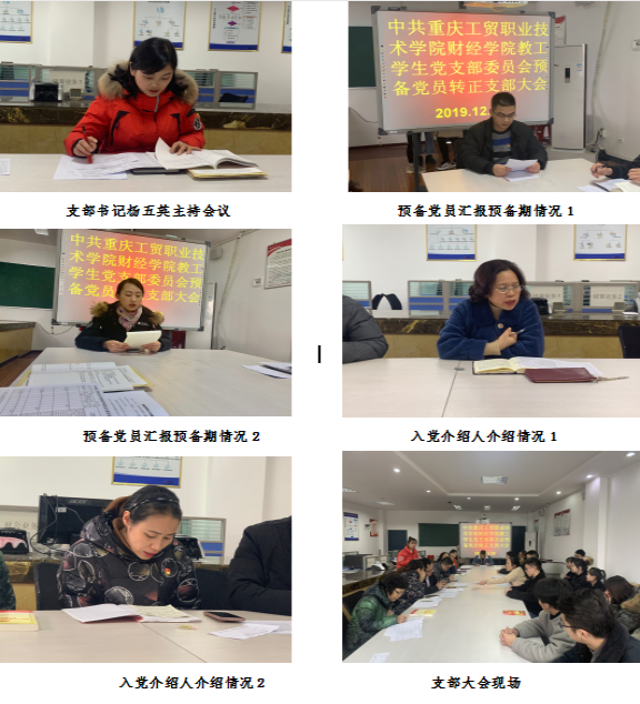 2019年12月20日,yl7703永利官网全体党员同志在二教405室召开了预备党员转正支部大会,就黄宇、杜鹃(女)、王冷豪三位同志由预备党员转为中共正式党员的相关事宜进行讨论和表决。支部大会由yl7703永利官网教工学生党支部书记杨五英同志主持。