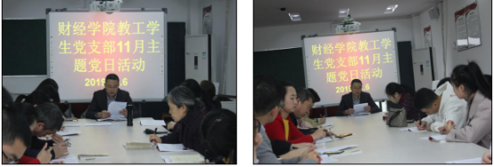 2019年11月6日,yl7703永利官网教工学生党支部在第二教学实训楼405室开展了11月主题党日活动,主题党日活动的主题是:学习贯彻党的十九届四中全会精神,认真梳理上级党组织反馈意见,自身查找的问题和征求到的意见建议,进一步完善问题清单,明确整改措施,为下一步开好专题组织生活会打好基础。主题党日活动由党总支书记艾海涛主持,全体党员同志参加。