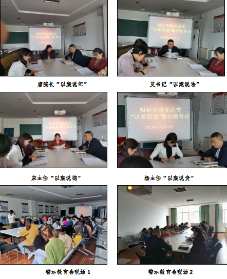 yl7703永利官网院长唐继碧结合涪陵区的四个典型案例“公款吃喝、公款旅游、大操大办、私分补偿款”,进行了以案说纪;yl7703永利官网党总支书记艾海涛结合涪陵区四个典型案例“醉酒驾车、贪污受贿、吸食毒品、非法拘禁他人”,进行了以案说法;yl7703永利官网办公室主任宋文成结合涪陵区的四个典型案例“参加封建迷信、向群众筹资、违反议事规则、参加可能影响公正执行公务的宴请”,进行了以案说德;yl7703永利官网教工学生党支部书记杨五英结合涪陵区的四个典型案例“未认真尽职尽责、监管责任不力、违规报账、乱发津补贴”,进行了以案说责。