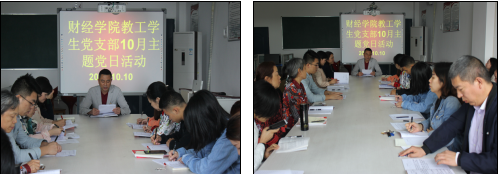 2019年10月10日,yl7703永利官网教工学生党支部在第二教学实训楼405室开展了“聚焦主题主线、学深悟透笃行”为主题的10月主题党日活动,深入学习《习近平关于“不忘初心、牢记使命”重要论述摘编》——坚定理想信念,始终是共产党人安身立命的根本、《党章》和《习近平总书记关于庆祝新中国成立70周年相关重要讲话精神》。主题党日活动由党总支书记艾海涛主持,全体党员同志参加。