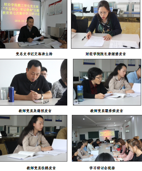2019年10月10日,yl7703永利官网教工学生党支部在第二教学实训楼405室组织全体党员同志“不忘初心、牢记使命”主题教育第七次集中学习研讨,主题教育第七次集中学习研讨由党总支书记艾海涛主持,全体党员同志参加。