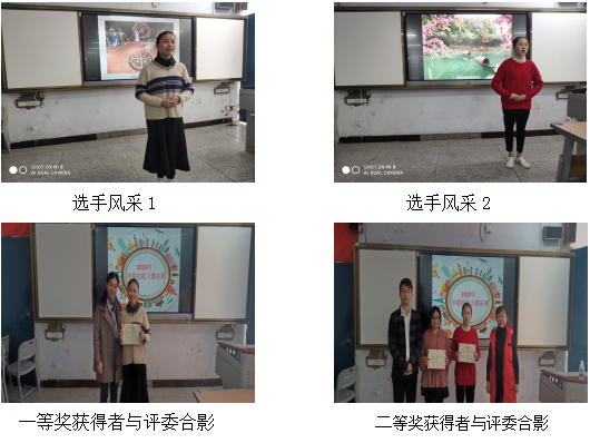 整个比赛精彩纷呈,选手们的讲解令人眼前一亮。经过两个小时的激烈角逐,本次比赛评出一等奖一名,由2018级学生曾云芬获得,2018级学生余加露、黄元洁获得二等奖,2019级学生何欣雨、段绪茜和2018级的杨琪分获三等奖。颁奖环节结束,由王琼老师对选手的表现进行点评,表扬其优秀之处,同时指出不足并提出了建议。