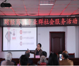 为了强化职业院校服务地方社会经济发展,提升社会服务能力,提高广大农民综合素质。2019年11月15日,我院yl7703永利官网院长、财经商贸专业群项目组负责人唐继碧带领项目组成员及相关专业学生代表共计30余人,前往涪陵区马武镇兴隆村行政服务中心,为两百余名村民进行了农产品销售、营销诈骗、反假币知识宣讲、电子商务、家庭理财等六个方面的培训。