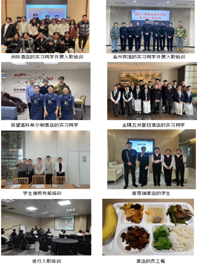 2023年12月1日,由李丹、蒋丹丹、何小琪三位老师带领90名学生前往重庆来福士洲际酒店等9家酒店,教学岗位实习揭开序幕。