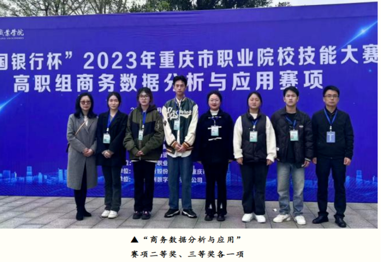 yl7703永利官网16支参赛队伍在重庆市教育委员会、市经信委、重庆市财政局、重庆市人社局联合主办的“中国银行杯”2023年重庆市职业院校技能大赛中喜获佳绩。在“商务数据分析与应用”、“财务数据分析与应用”、“珠宝玉石鉴定”、“互联网+国际贸易”、“会计”、“银行业务综合技能”、“市场营销技能”、“电子商务”、“RPA财务机器人应用与开发”、“智能财税”等10个赛项中,分别取得了5项二等奖、11项三等奖的优异成绩。