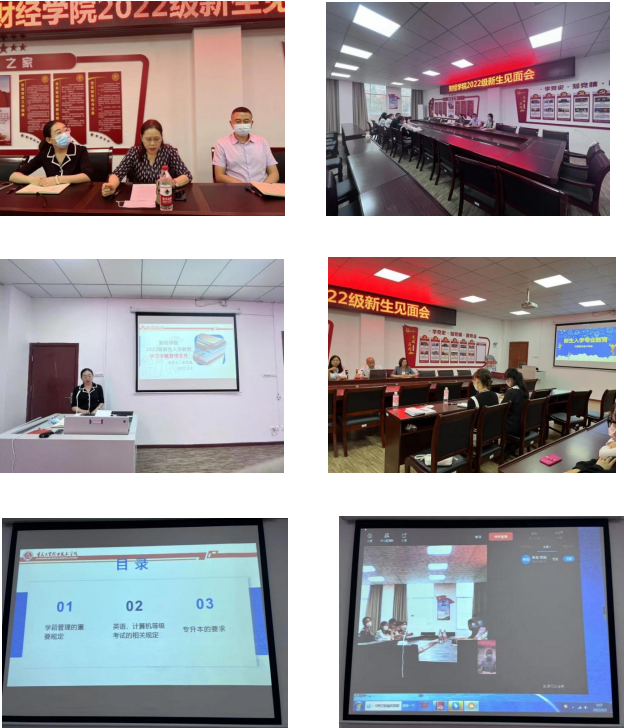 9月3日上午,我院在二教303党员阵地室通过线上平台举行了2021级新生见面会。会上,唐院长首先代表yl7703永利官网对2022级新生表示热烈的欢迎,并从学院的师资力量、专业发展、实训室和实训基地、专业技能比赛、专升本、优秀毕业生等方面给同学们作了介绍,接着对同学们提出了几点希望:一是希望同学们尽快适应大学生活的转变、尊重他人建立融洽的人际关系、坦然面对学习和生活中的困难;二是要求大家把握好三年大学时光,立志成为"志存高远、学业精深、体魄强健"的高素质人才;三是要树立正确的世界观,人生观和价值观,培养健康的情趣和完善的人格;四是要遵纪守法,文明诚信,遵守校纪校规,做一个有知识,守规矩,懂礼貌的人。五是同学们在学习和生活中一定要注意安全,要有高度的安全防范意识,做好人身,财产方面的安全防范,做到对自己及家人负责。接着,宋主任为2022级全体新生开展了学籍管理规定两个方面的主题教育。9月3日下午,各教研室主任及专业教师分别对本专业学生进行了专业教育,令学生对专业的认识更加深刻,充分提高了学生对学习的积极性。