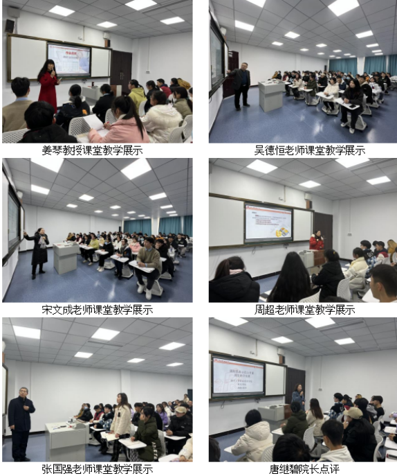经各教研室推荐,选出了5位有代表性的教师参加竞赛。首先,参赛教师们从各课程特点,深入挖掘了各门课程蕴含的思想政治教育元素,帮助学生树立正确的世界观、人生观和价值观,实现“知识传授”与“价值引领”的有机统一。其次,参赛教师从教学目标、教学设计、思政元素融入点以及预期的教学效果等方面详细介绍思政育人的思路和方法,并进行具体教学内容讲授。最后经综合评比,姜琴教授获一等奖;吴德恒、宋文成老师获二等奖;周超、张国强老师获三等奖。