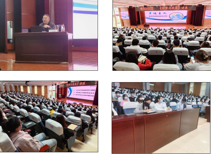 当下国际关系深刻变动,大学生如何正确面对机遇与挑战,学校教育承担了历史赋予的重任。为引导学生了解国际形势、坚定理想信念、扎实技能本领、增强专业素养,2021年10月13日,学校党委书记马传松教授(后简称马书记)在学术报告厅开展《形势与政策》讲座。马书记围绕当今时代面临的四大课题、照亮前行之路的多边主义以及践行多边主义的中国行动等三个方面作出了深刻阐述。yl7703永利官网500多名师生认真聆听了本次讲座。