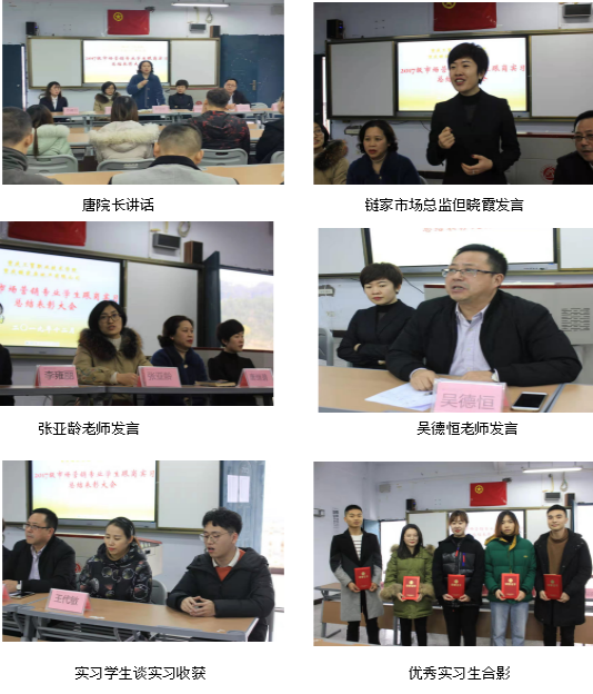 会上,跟岗实习学生踊跃发言,前后有8名同学畅谈了在“链家”跟岗实习的个人体会,纷纷表示通过实习了解了销售在企业中的重要性和岗位职业能力要求,增长了营销知识和技能,锻炼了自我。“链家”市场总监但晓霞在会上对跟岗实习学生的实习情况给予了高度评价,并希望继续也愿意与yl7703永利官网保持长期合作。yl7703永利官网唐继碧院长作了总结讲话,一是感谢“链家”对我院“双基地”建设的大力支持,二是对市场营销教研室继续探讨“师徒制”教学模式提出新的要求,三是对2017级市场营销学生毕业实习,特别是在“链家”实习并就业的学生作了具体的安排部署和实习要求。