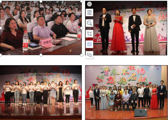 此次晚会的节目异彩纷呈,晚会在一支由学生会文艺部带来的舞蹈《致青春》中拉开了序幕,动感的舞步,获得同学们一致的好评,同时也点燃了同学们的激情!团总支秘书部带来的乐器合奏歌曲《那一年》优美悦耳,动听悦耳的歌声环绕整个晚会现场。正当大家都沉浸在优美的歌声中时,学生会生活部带来的舞台剧《同桌的你》把每个人的细胞都变得活跃起来。接下来,就是与在场毕业生的互动环节,通过屏幕上流动的七百多位同学的名字,抽奖选出30个幸运儿,送出学院为他们准备的小礼品。学生会文艺部演唱的《老男孩》更是轰动全场。舞蹈《在青春里见》、《忆往昔 大学时光》更是将现场的气氛推向高潮。之后,2019届毕业生代表还带来了朗诵《梦想》告诉在场的毕业生们梦想之路又是那么的艰难与遥远。最后,晚会在青年志愿者文体部带的舞蹈《送别》中落幕。