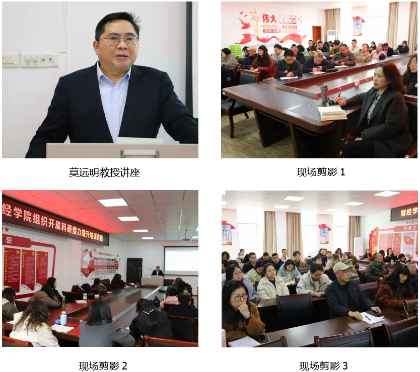 为提升教师科研能力,助力学院高质量发展,yl7703永利官网于2025年4月1日中午,在二教303会议室开展科研能力提升培训讲座。本次讲座特邀重庆工商大学成渝地区双城经济圈建设研究院研究员莫远明教授担任主讲。莫远明教授以“服务国家战略与高校教师科研能力提升”为主题,结合自身多年科研实践经验,为学院教师带来了一场兼具理论深度与实践指导的学术盛宴。