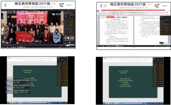 在班会开展的过程中,辅导员们首先向同学们问好,并传达了重庆市教委及学校的相关精神,强调同学们要积极配合当地相关部门的工作,主动防控疫情。虽然当前形势略有好转,但仍有反弹风险,各位辅导员强调同学们仍需要留在家中,不要聚集、聚会,不要去人多的场所,尤其是已经恢复运营的一些风景区等。另外,学校的开学日期仍然待定,同学们不得提前返校。同时,辅导员还传达了“停课不停学”的要求,动员同学们按要求参加网课学习,合理安排作息,适当锻炼,以更好的精神面貌度过这段时间。对于毕业班的学生,辅导员传达了市教委关于顶岗实习的相关文件精神,同时,鼓励同学们通过教育部的24365校园联合招聘平台、重庆市的大型网络双选会,积极寻求工作机会,参加线上面试,落实工作岗位。