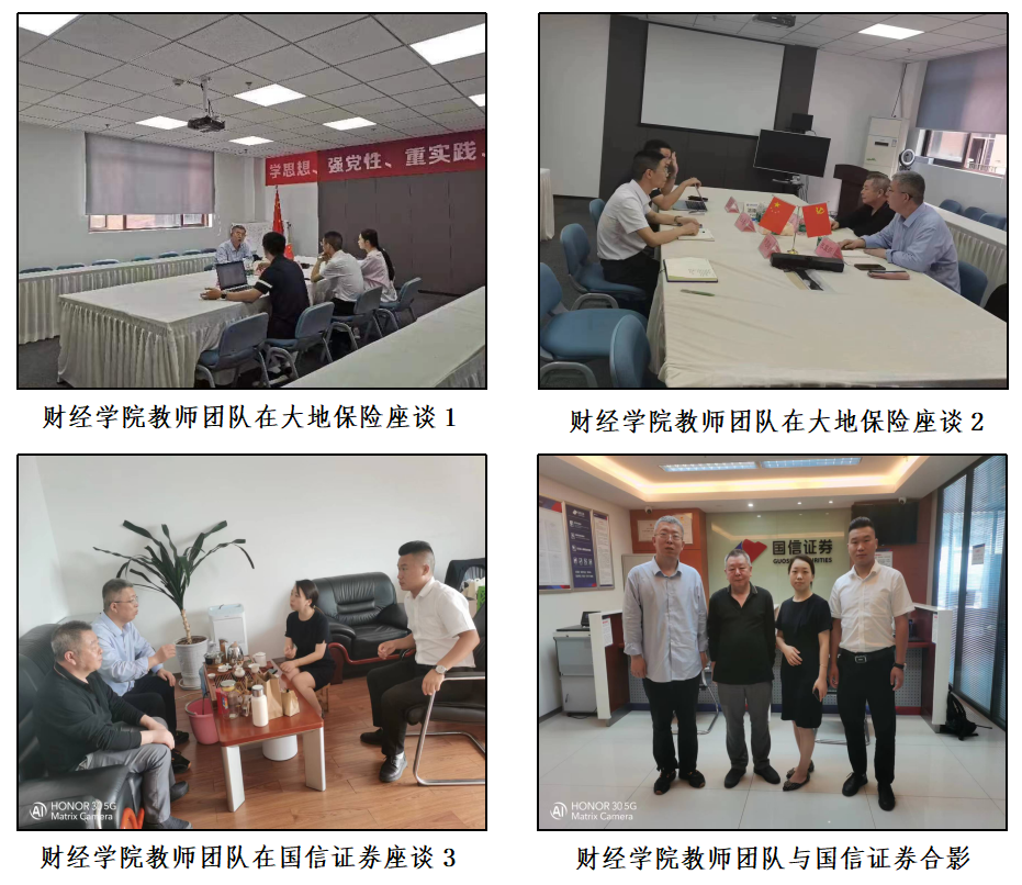 中国大地财产保险股份有限公司重庆分公司涪陵中心支公司任玉春总经理表达了希望能够进一步深化校企合作的意愿,他指出,中国大地财产保险股份有限公司作为一家国有企业,有义务也有责任为金融职业人才质量提升贡献自己的力量,新一代年轻人正在走上工作岗位,作为金融机构的管理者,希望能够与职业院校进行合作创新,提高管理效能,进一步发挥员工的职业潜能。吴磊经理介绍了保险公司开展的组织创新。yl7703永利官网教师团队之后走访了国信证券涪陵营业部,受到了部门经理徐兴钢和杜伦芳的热情接待,yl7703永利官网教学团队进一步了解的证券行业人才需求的最新变化,为双方进一步合作拓展了新空间。